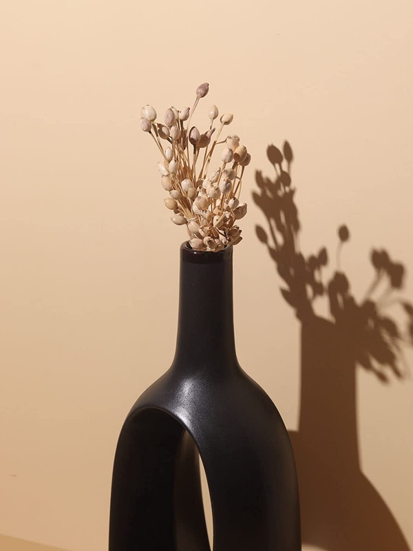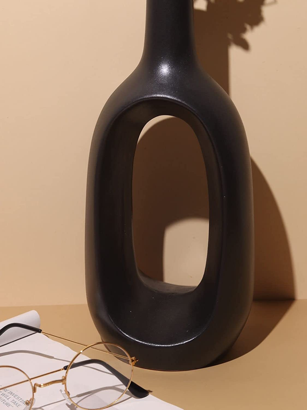 Craftribal Hollow Minimalist Flower Vase, Matte Finish, 12 Inches (Black), Ceramic